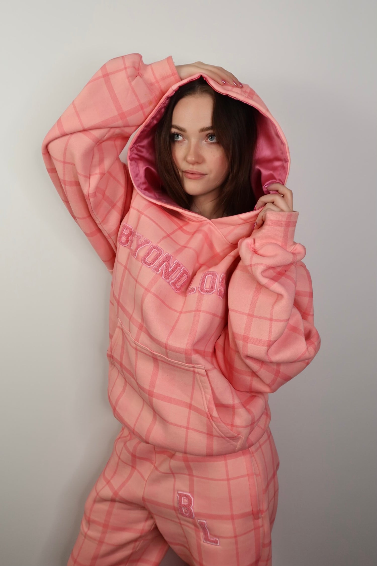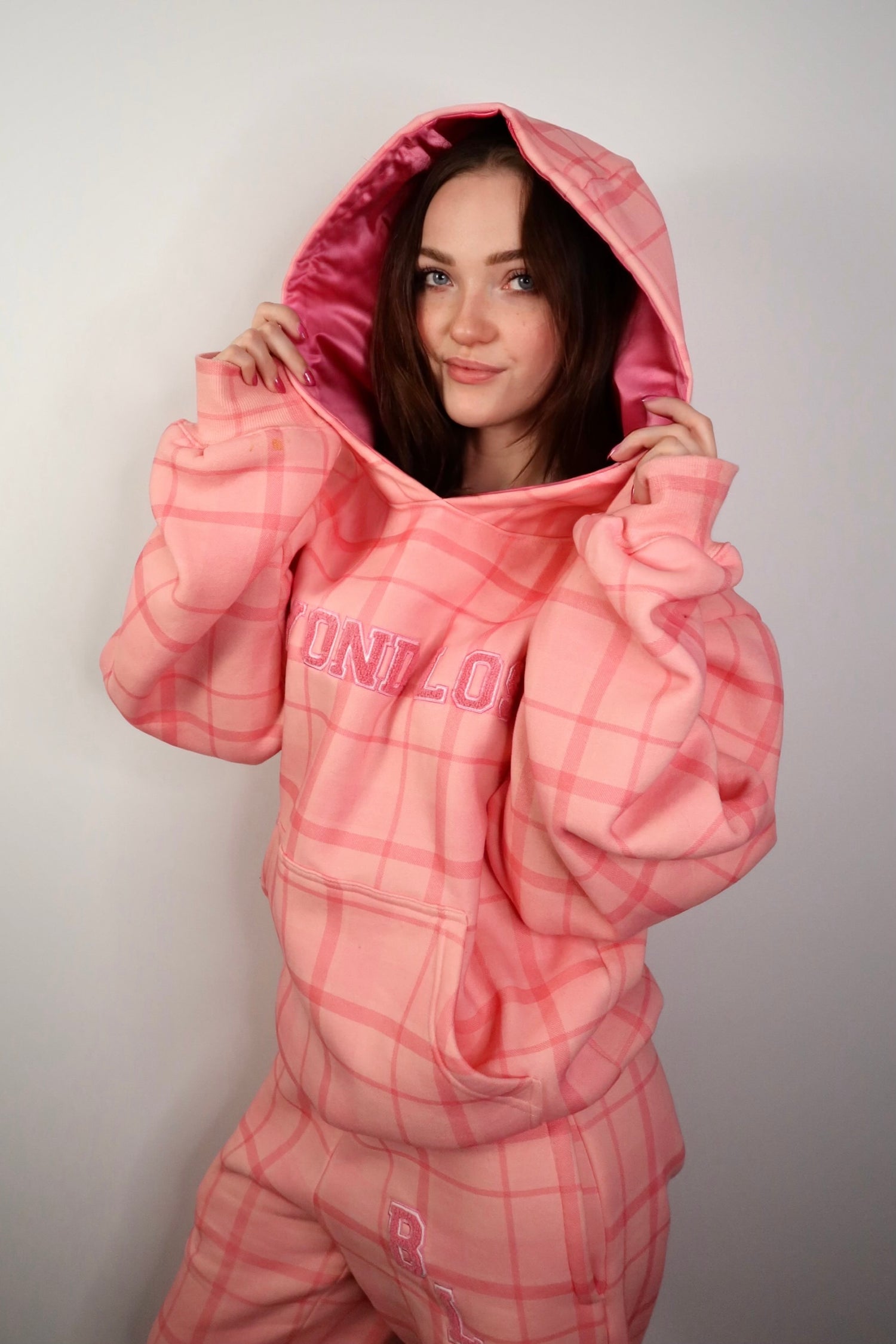 NEW! Smiley Blue Hoodie with Pink Rhinestones Satin Lined Hood