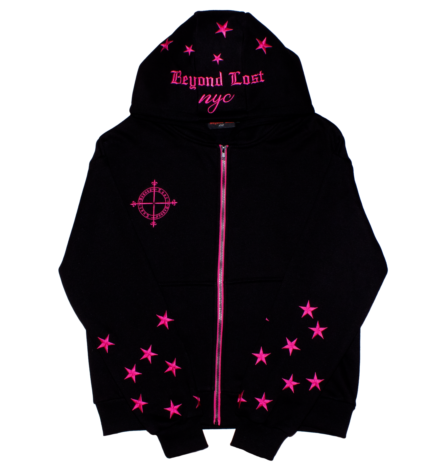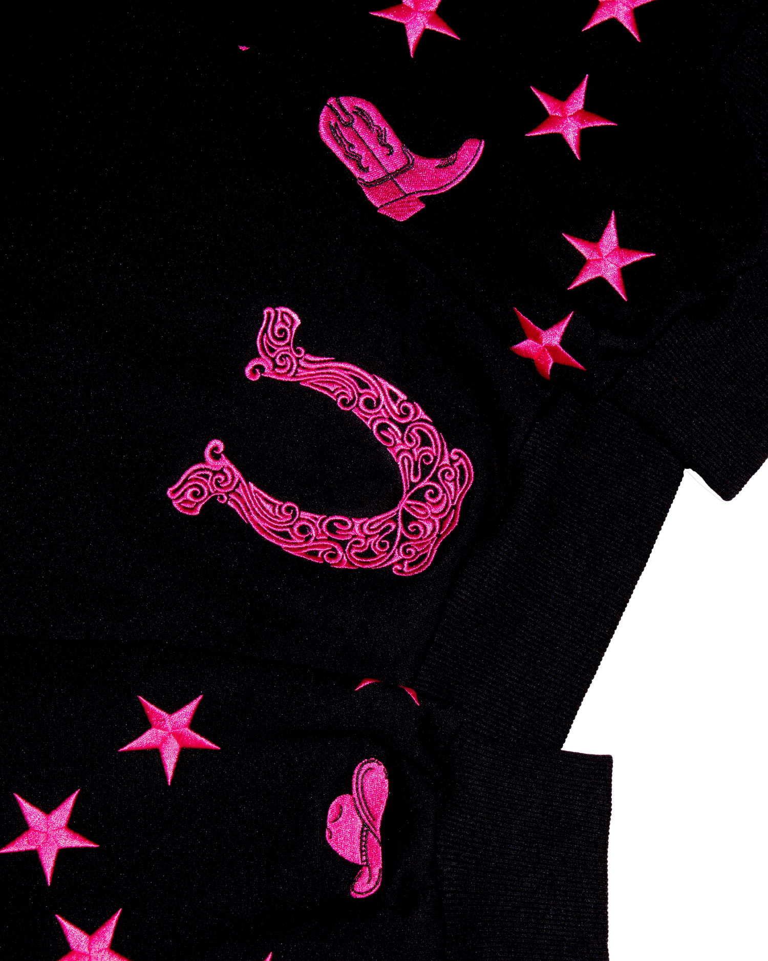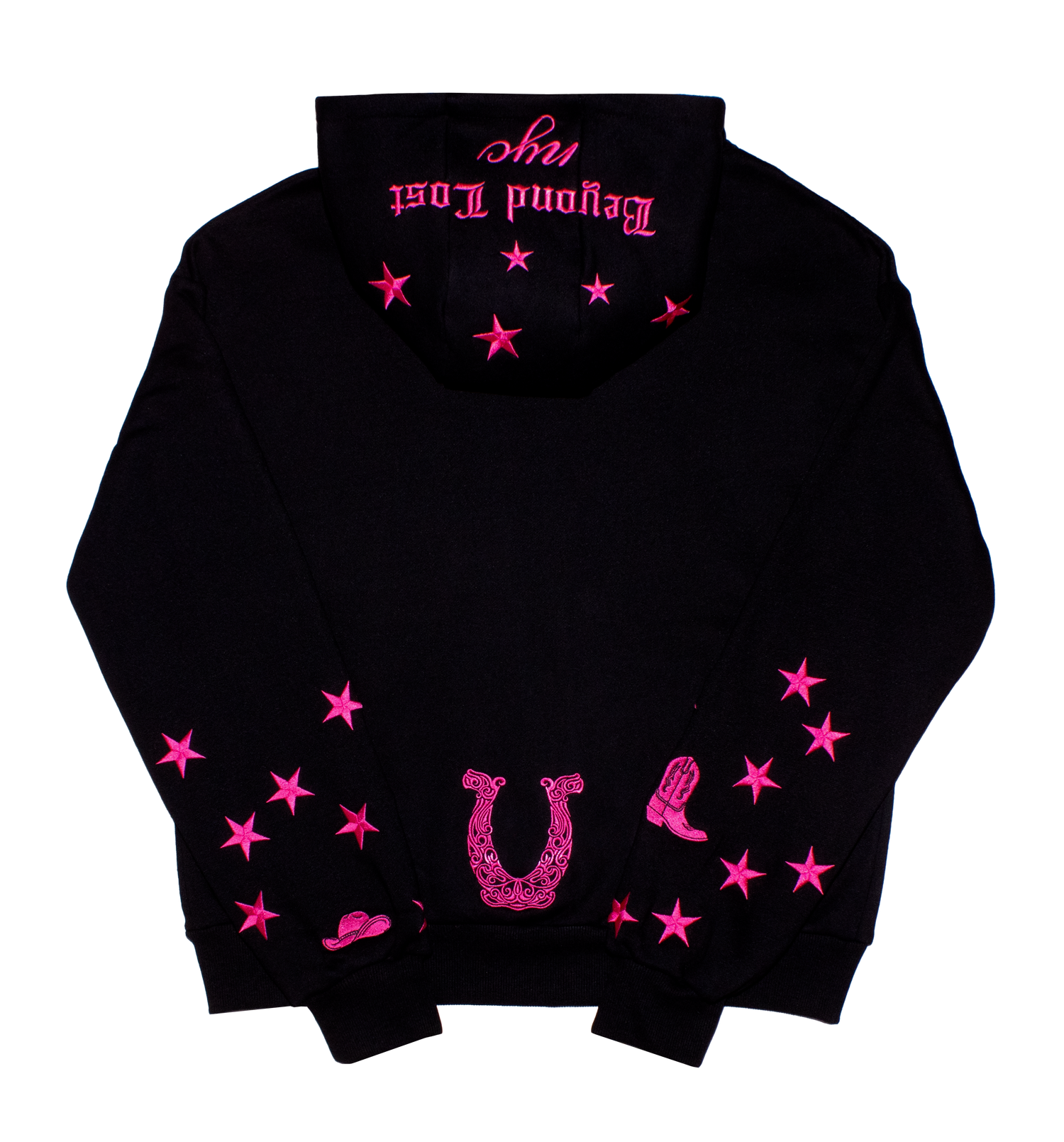 All Sales Final. Limited Edition! Black & Pink Zip Up Hoodie: Western Edit w/ Pink Embroidery Unisex Size