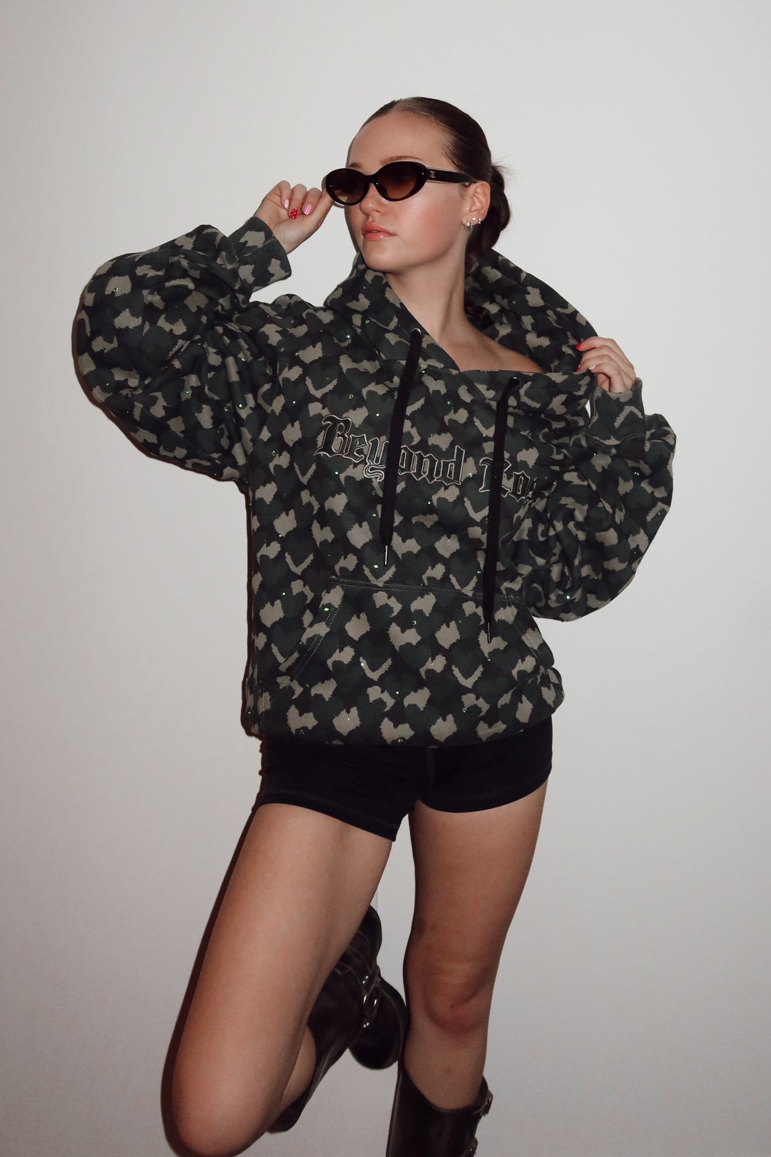Heart Camo Rhinestone Hoodie: Unisex/Handmade