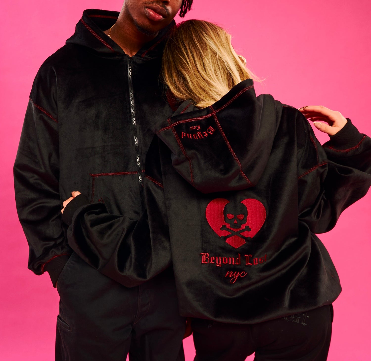 - Velvet with Embroidered Details on Hoodie